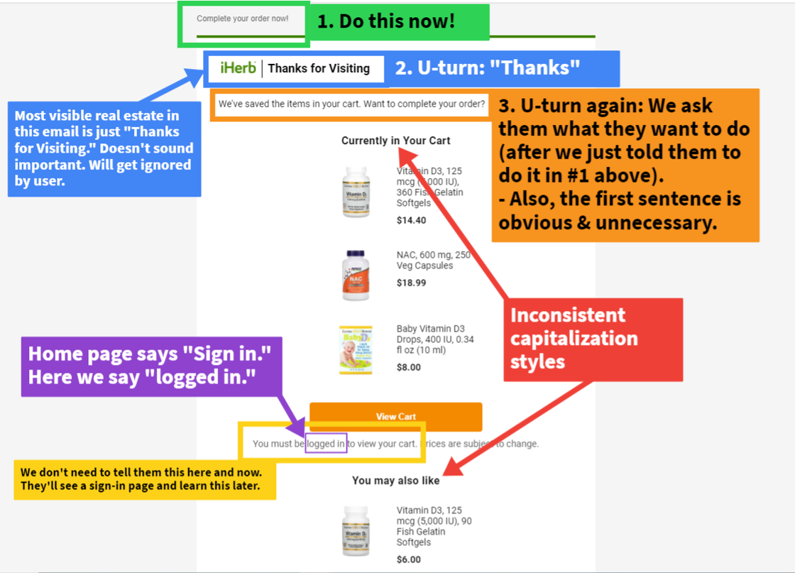 Part of the reason I was confident shifting a company’s capitalization is because years prior the Samsung UX writing team had shifted their capitalization, so I was able to see how it was done. However, the changes at Samsung were mostly automatic, whereas with iHerb, I had to make hundreds of manual changes in their CMS, which took a few days.