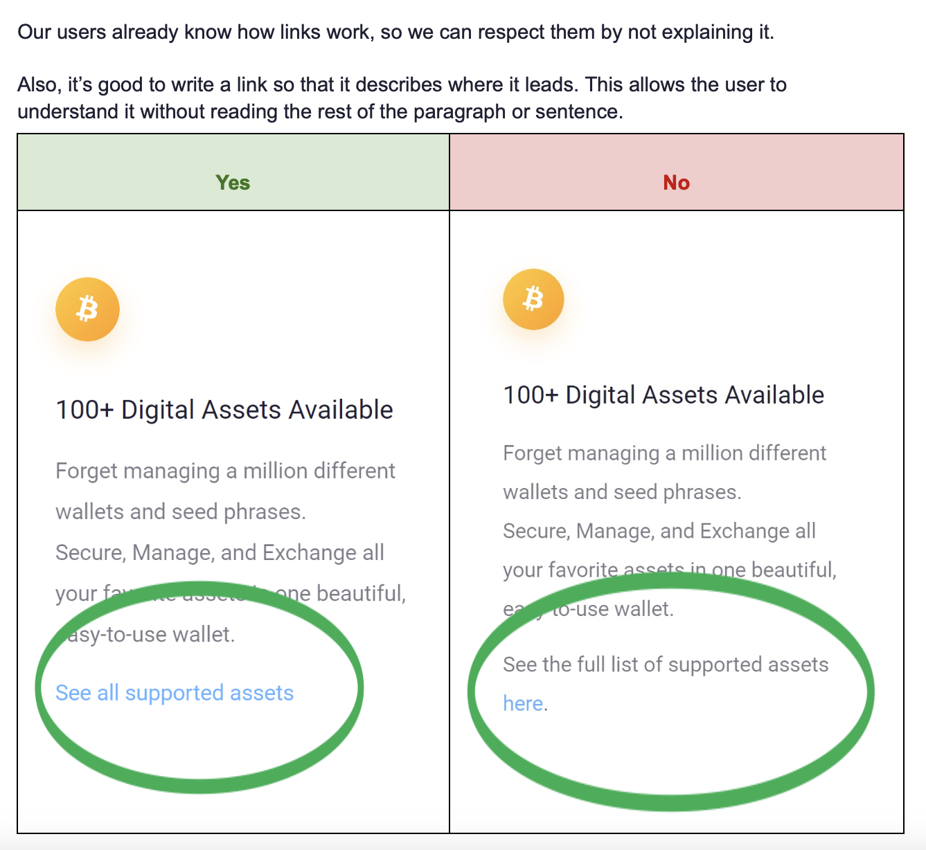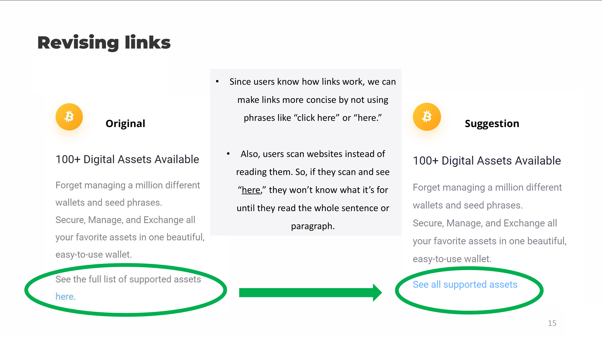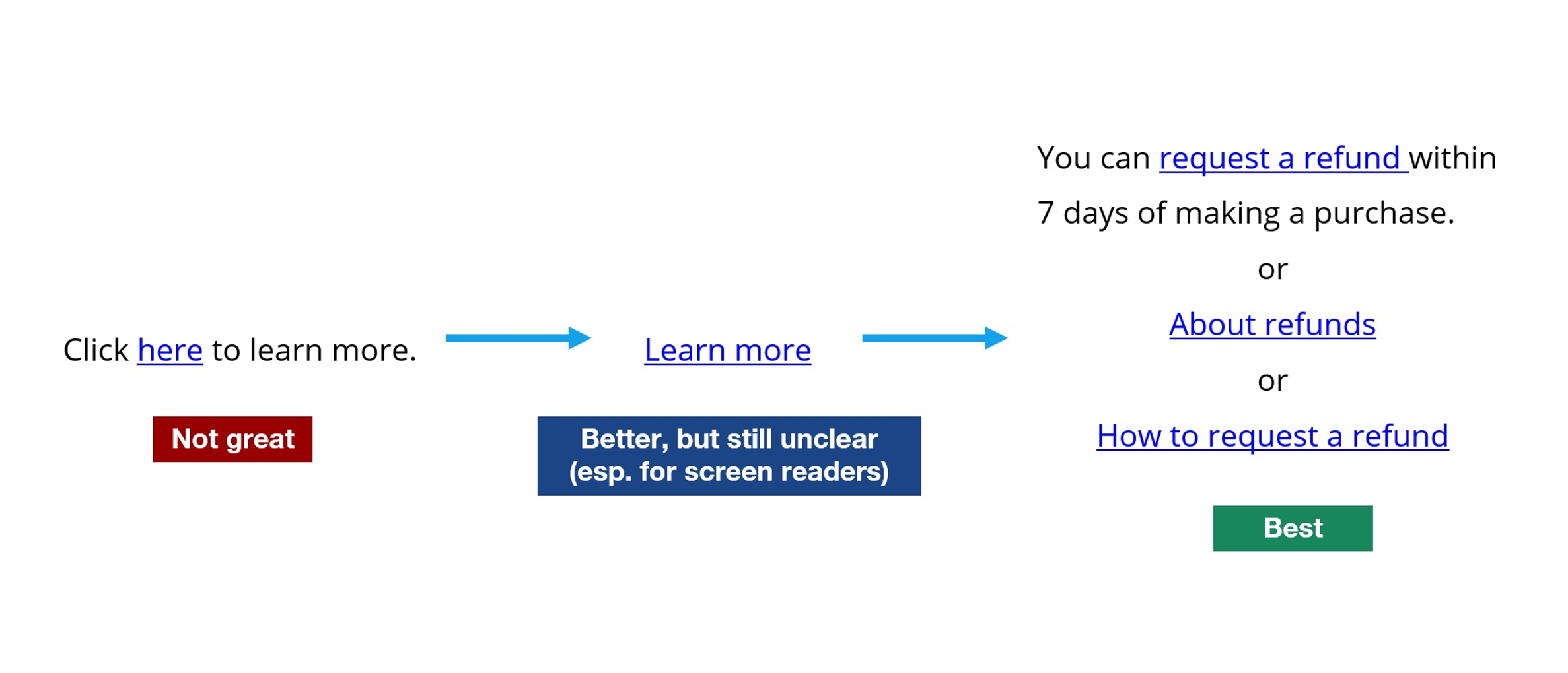 Ineffective writing such as “To view the full list, click here” and unclear CTAs