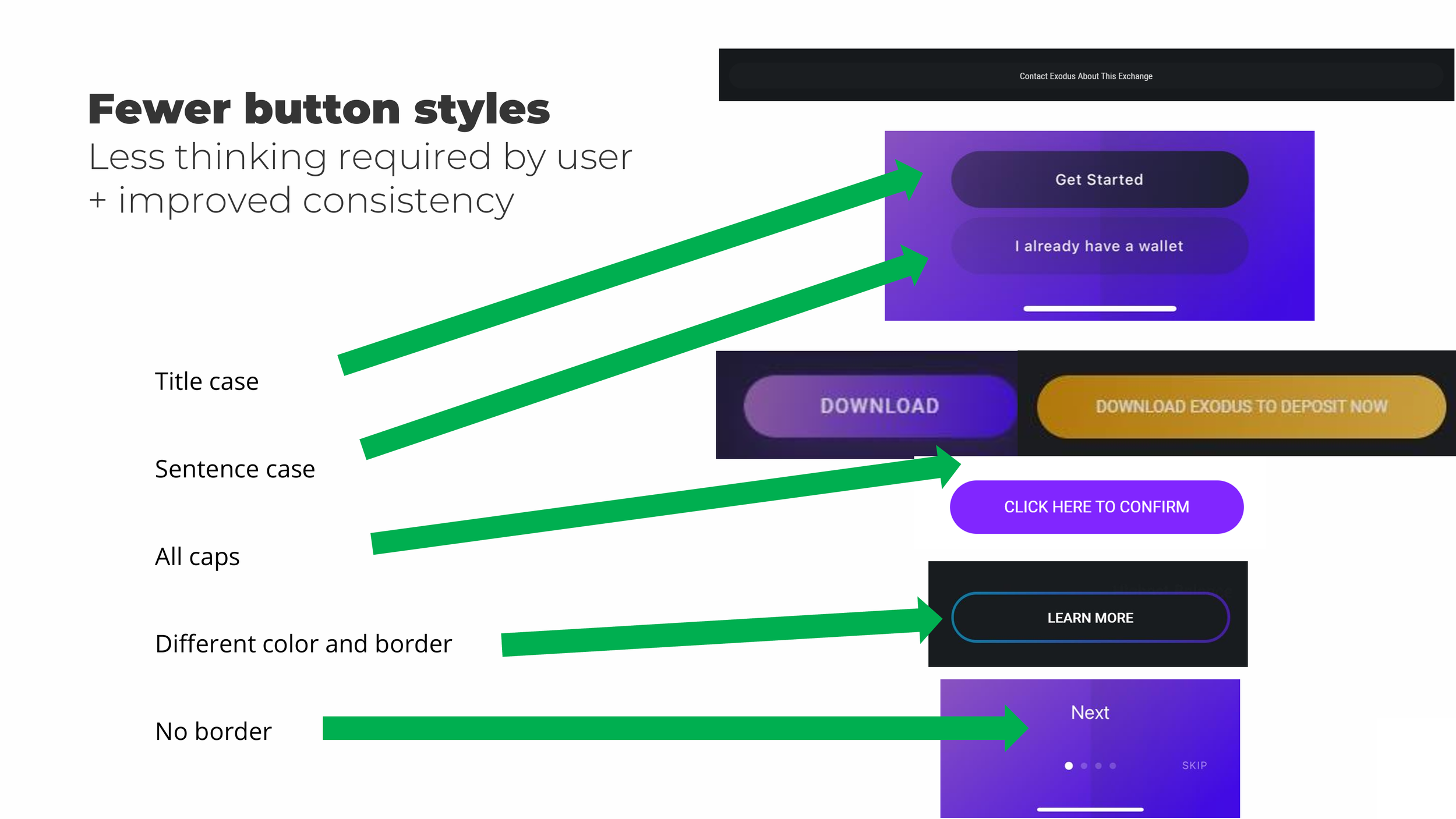 I shared a similar pitch deck at Exodus, however, it wasn’t as successful as design leaders decided it was too big of an undertaking at the time. They were convinced it was correct, but wanted to do it later.
